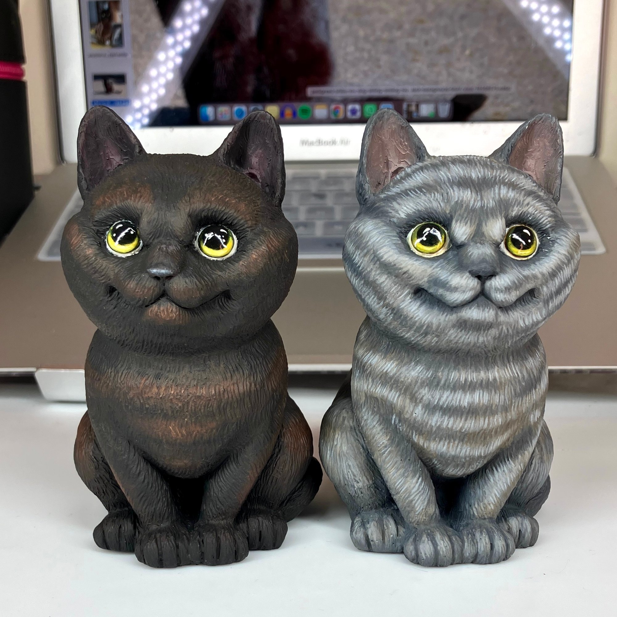 Handmade Cat cartoon-style figure. Each piece is cast in resin from an original hand-sculpted model. The sculpted design is fixed and not customizable, while the paint finish can be adjusted to match your cat. Intended as a decorative piece.